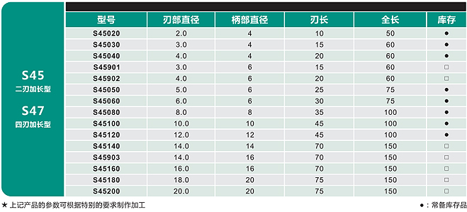 2刃/4刃,35°螺旋角,加長(zhǎng)型